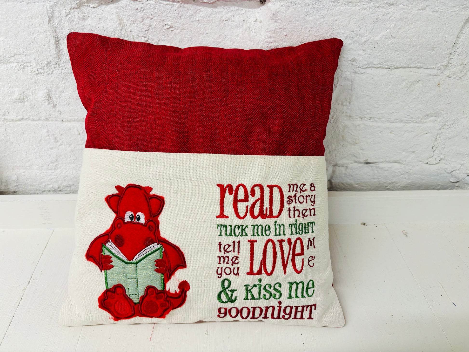 Cute Red Dragon Children’s Reading Book Cushion available in Welsh or English