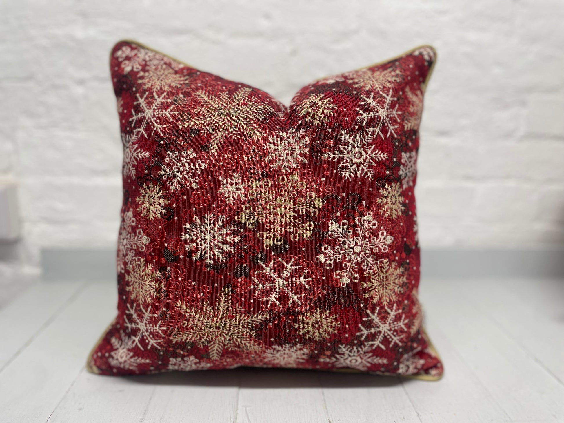 Festive Postal Box embroidered on the front. With our luxury Red and Gold Tapestry fabric fabric on the back