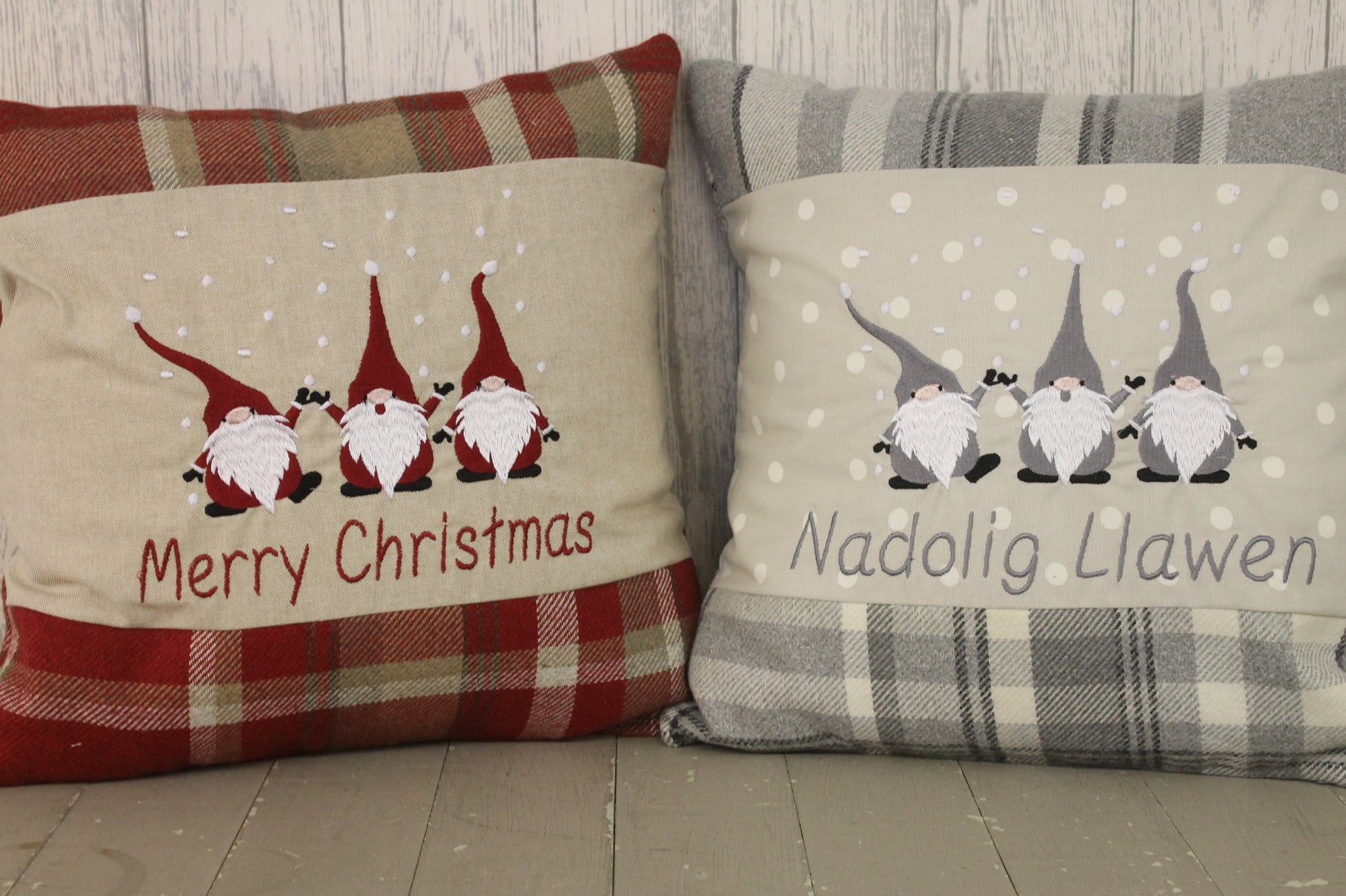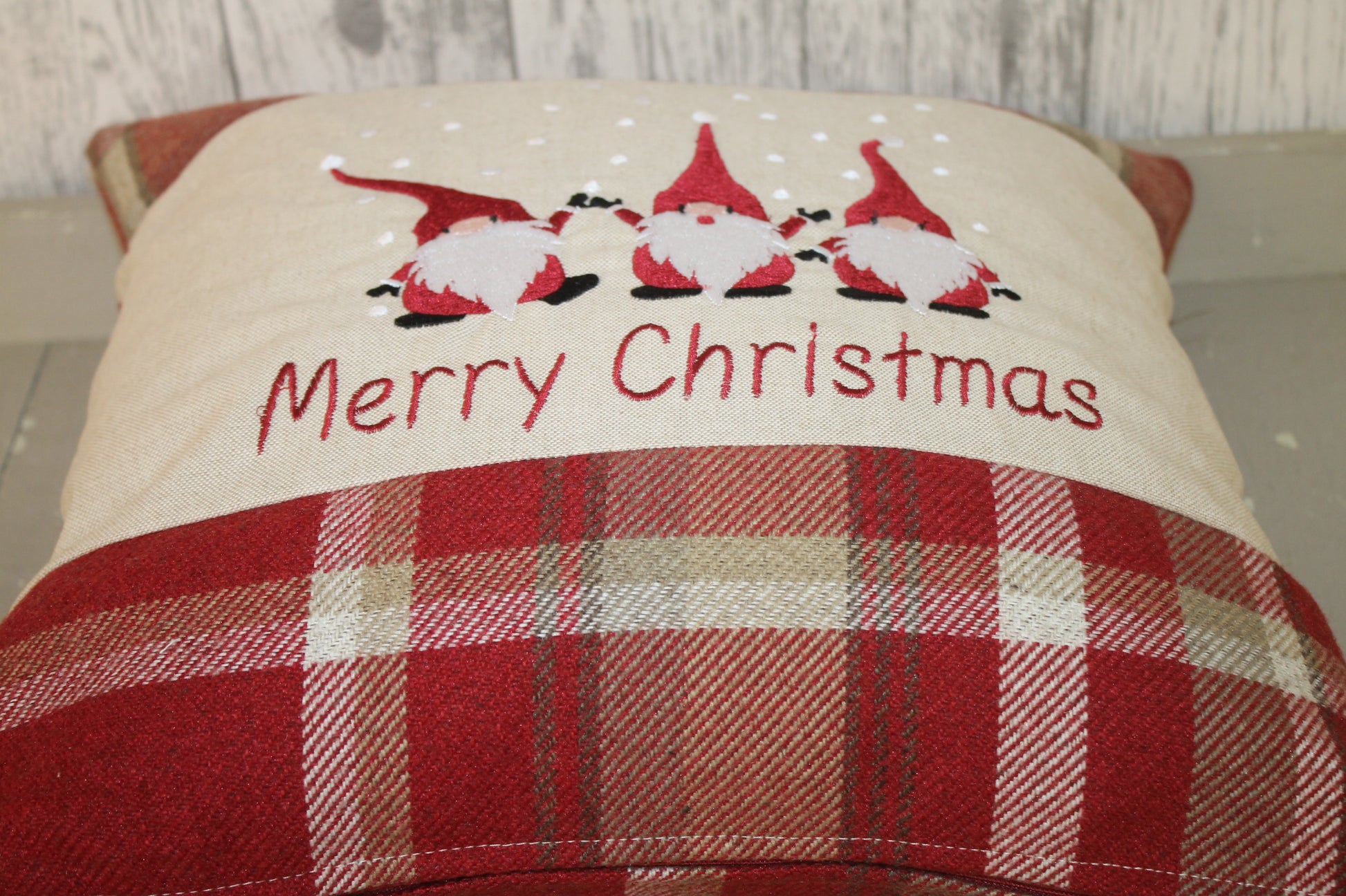 Festive Christmas Red Plaid Gnomes 16" Nadolig Llawen-Merry Christmas