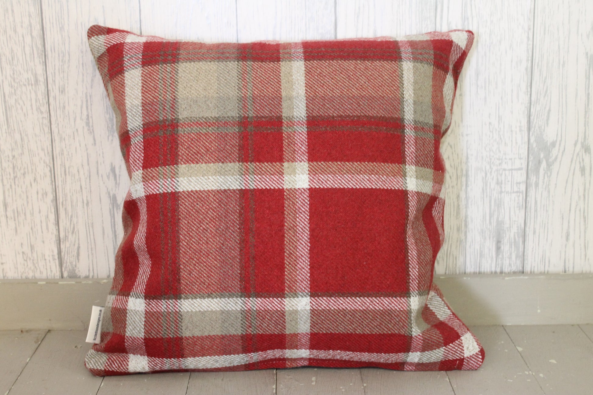 Beautiful Handmade Welsh Red Plaid faux wool effect Doubled sided Christmas Cushion