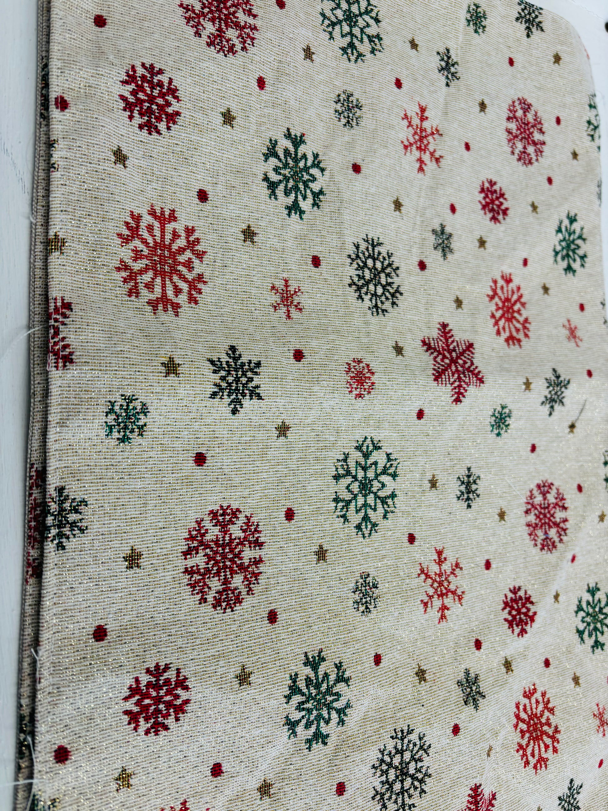 Introducing our festive Gold Snowflake Luxury Tapestry fabric placemats, crafted to add a touch of timeless elegance to your dining experience. Made from high-quality materials, Each placemat measures approximately 16x13” providing ample space for your dishes while protecting your table surface. Elevate your dining decor with these charming placemats, perfect for your festive table Also available in table runners , country holders and more