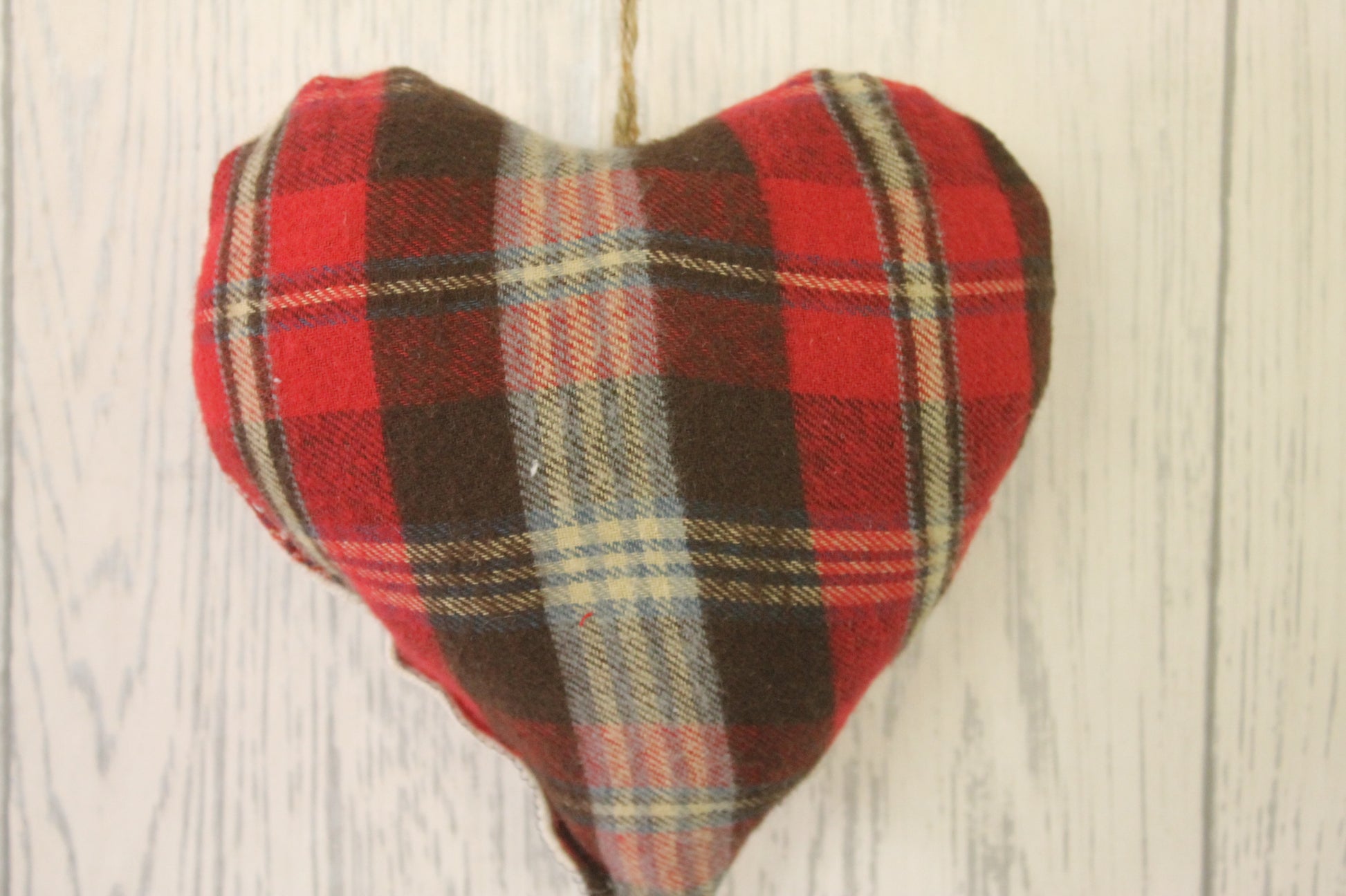 The heart is filled with a polyester filling and has a jute twine hanger.