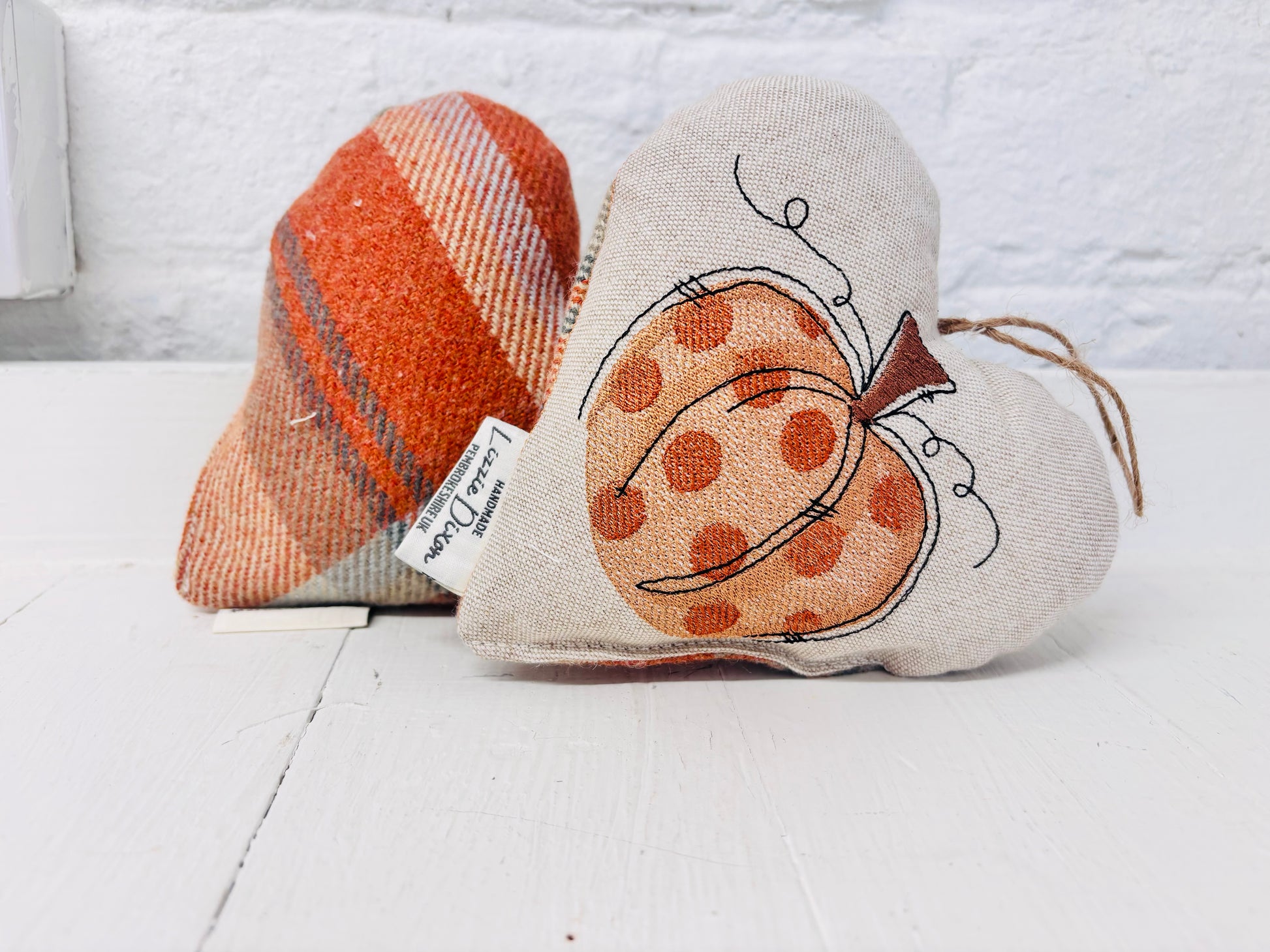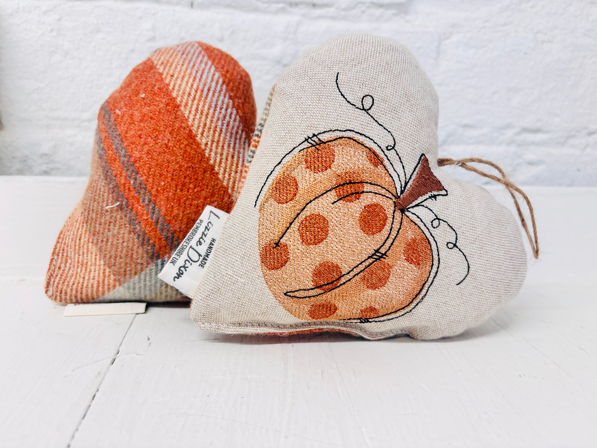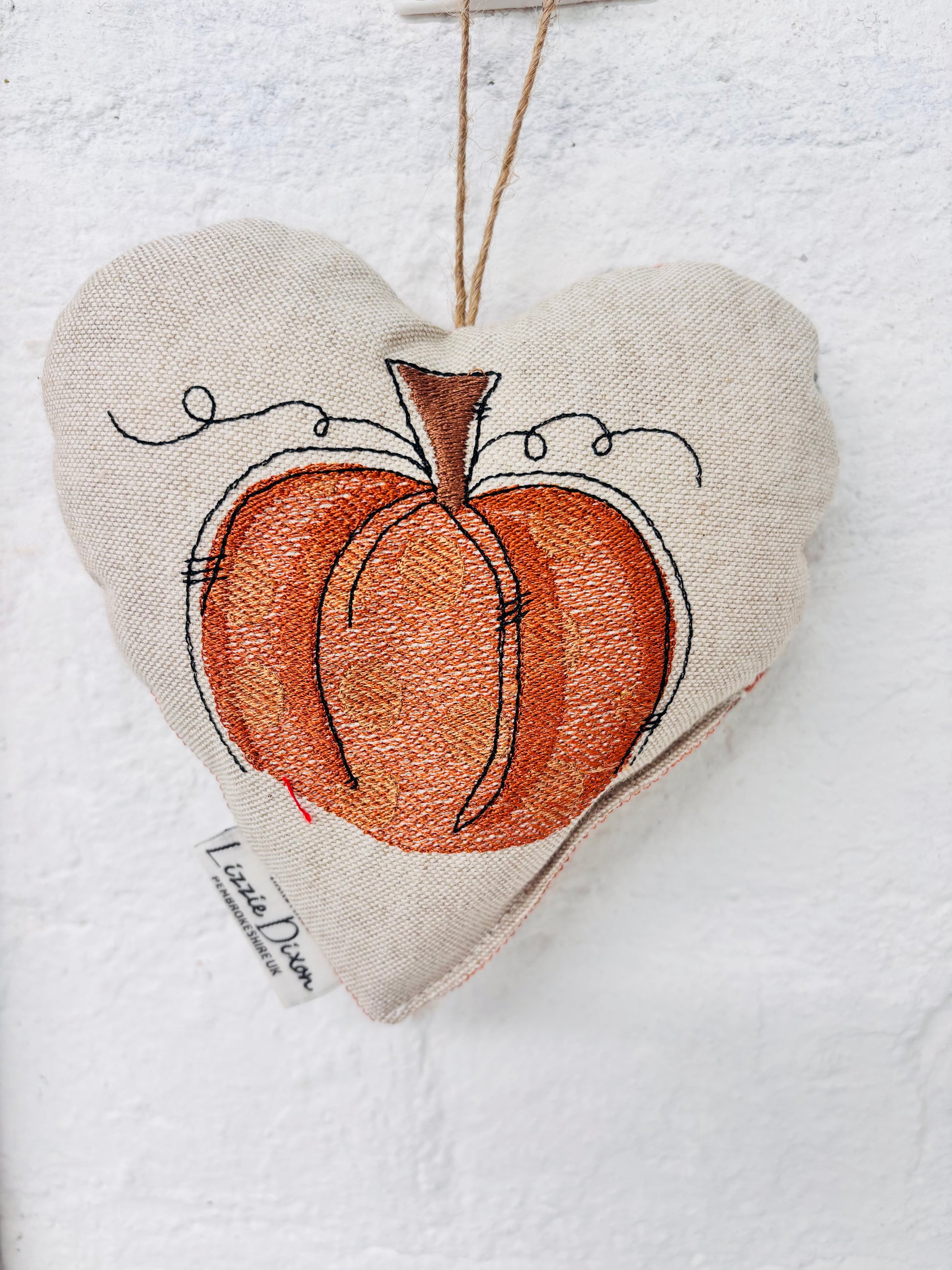 The heart is filled with a polyester filling and has a jute twine hanger.
