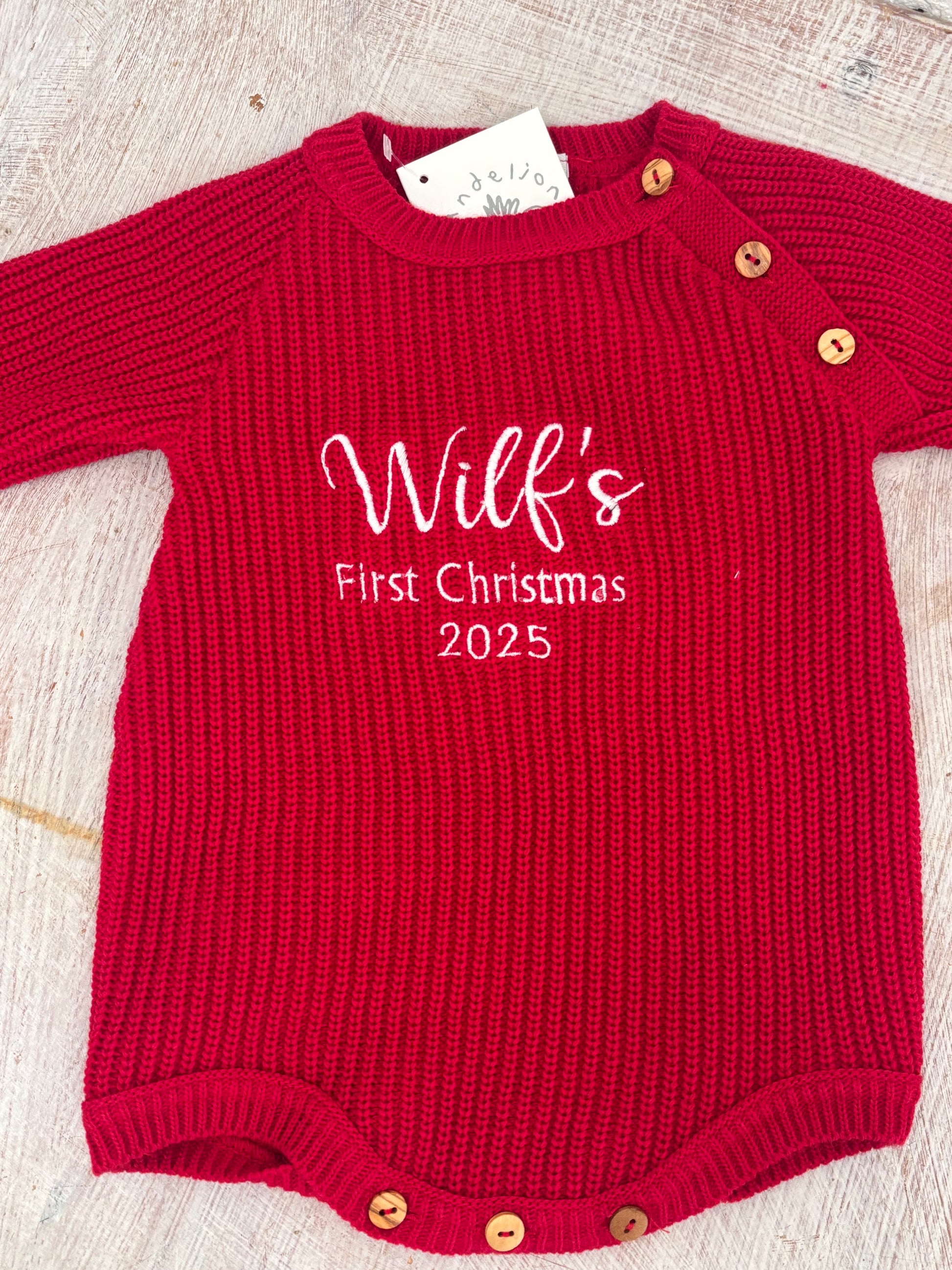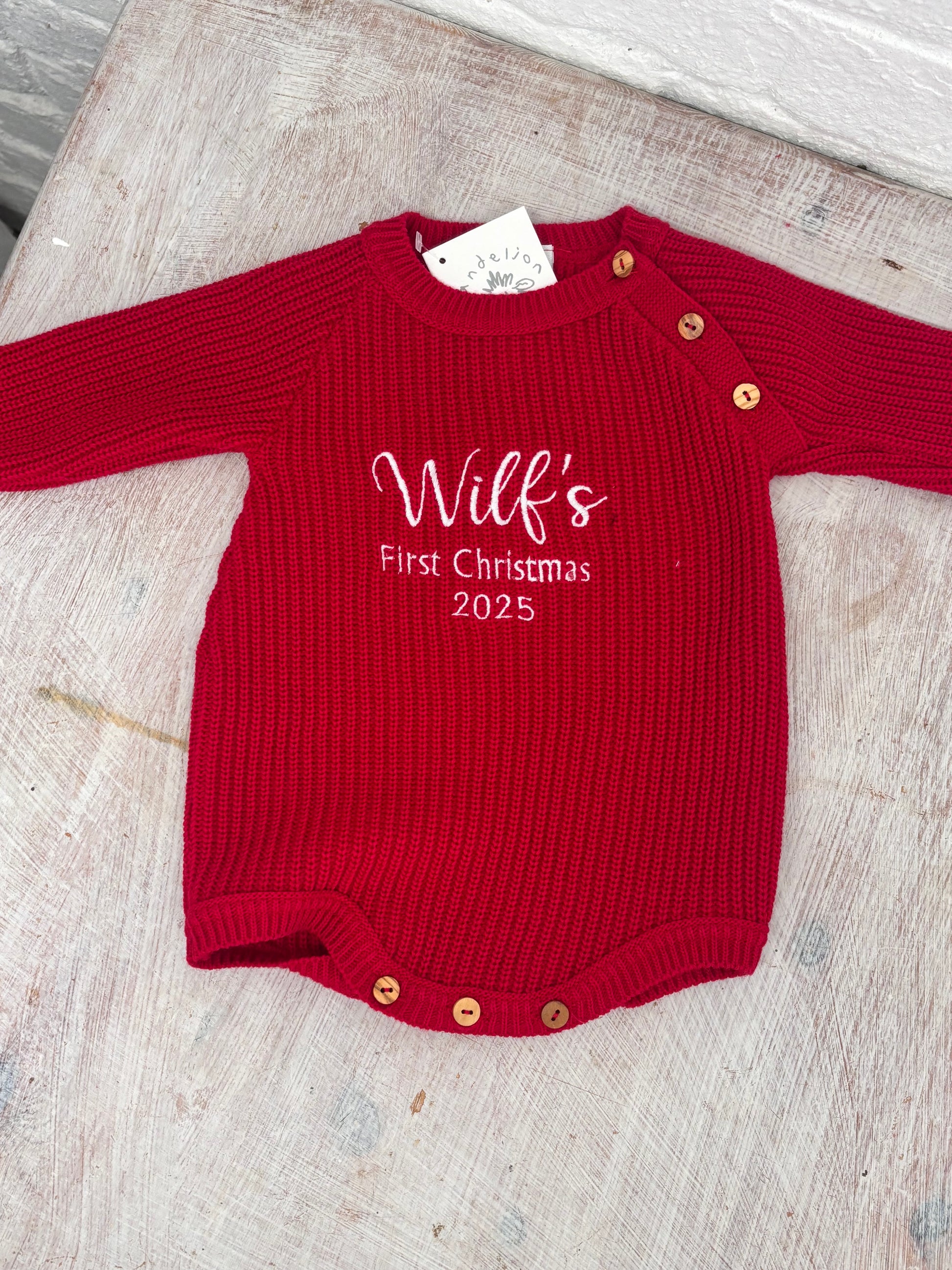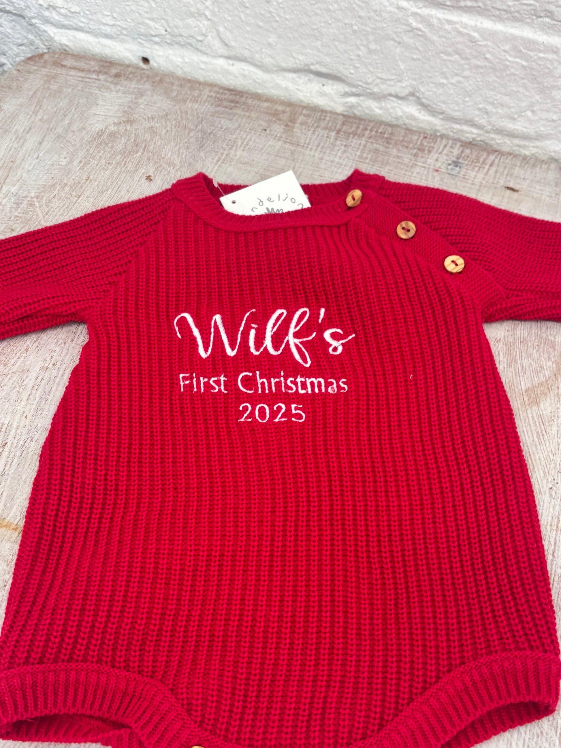 Keep your little one warm and looking super cute in our personalised Red knitted Romper . This cute knitted cardi is a cosy classic designed to keep them snug on chilly strolls to playdates and beyond. It’s made from luxuriously soft yarn in a versatile White shade and a classic ribbed knit that’s utterly adorable. Featuring a timeless brown button-down front and delicate ribbed details at the cuffs, hem and neckline, it’s perfect for layering over their outfit when it gets a little breezy. What makes it extra special? You can personalise it with their name for a one-of-a-kind wardrobe piece they’ll treasure (and look super cute in!). We offer a choice of sizes and a choice of embroidery thread colours .