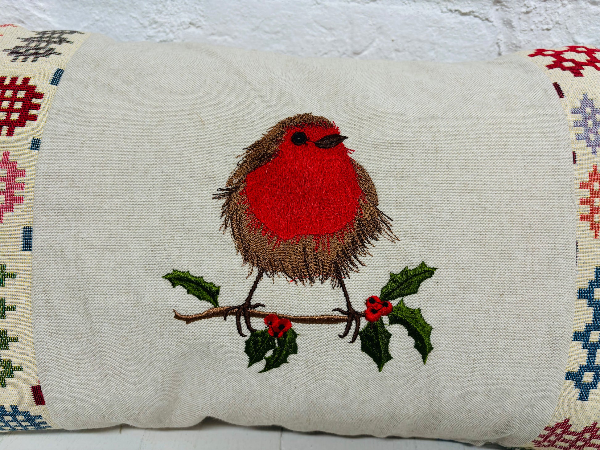 Nadolig Llawen Robin Cushion.