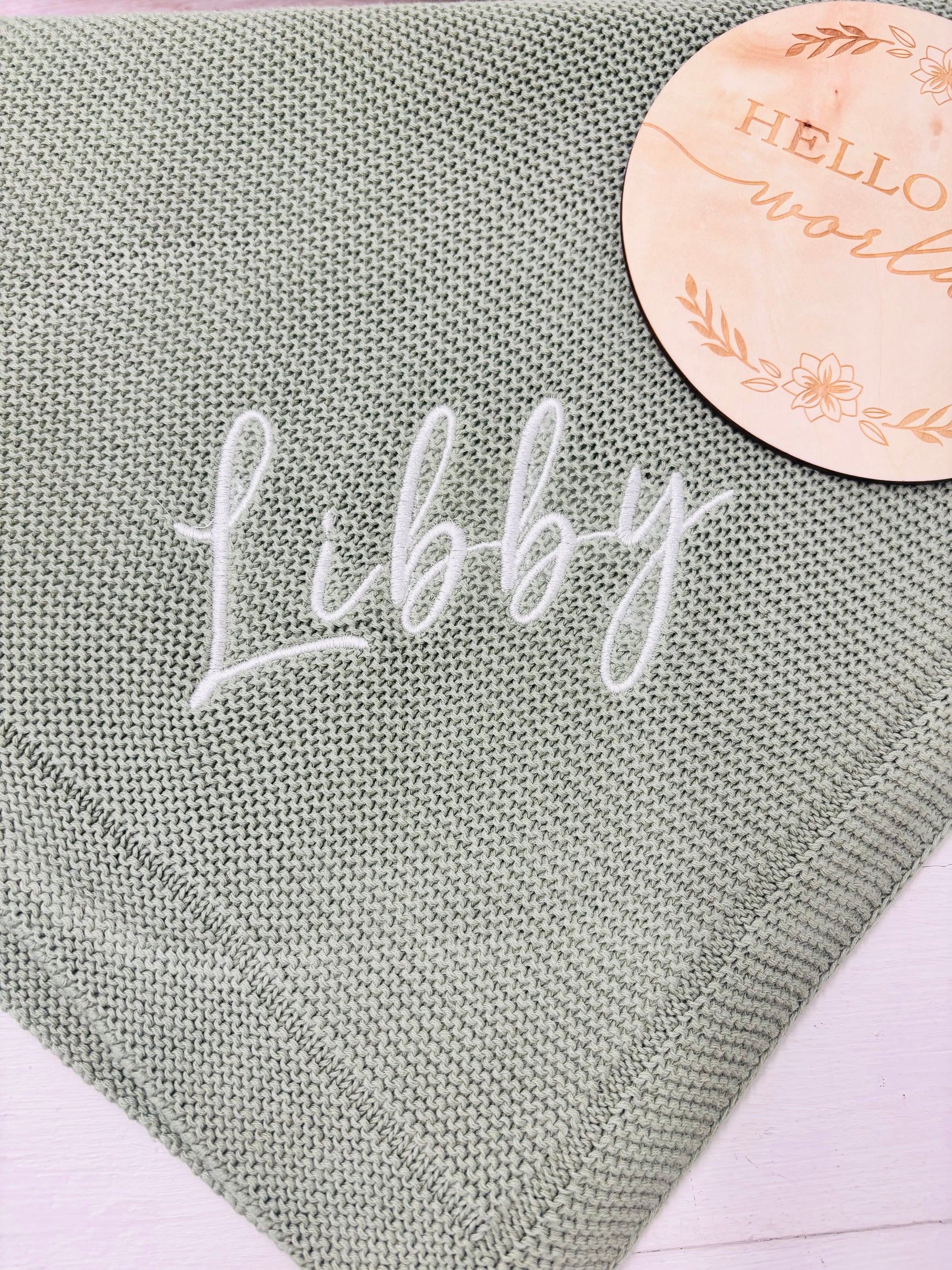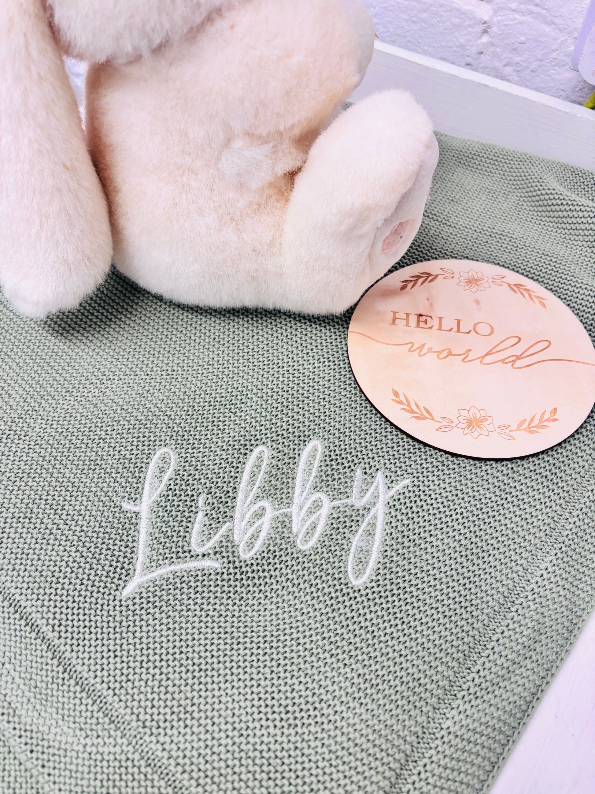 We can now offer these personalised with any baby name or surname, The name is embroidered on a corner of the blanket