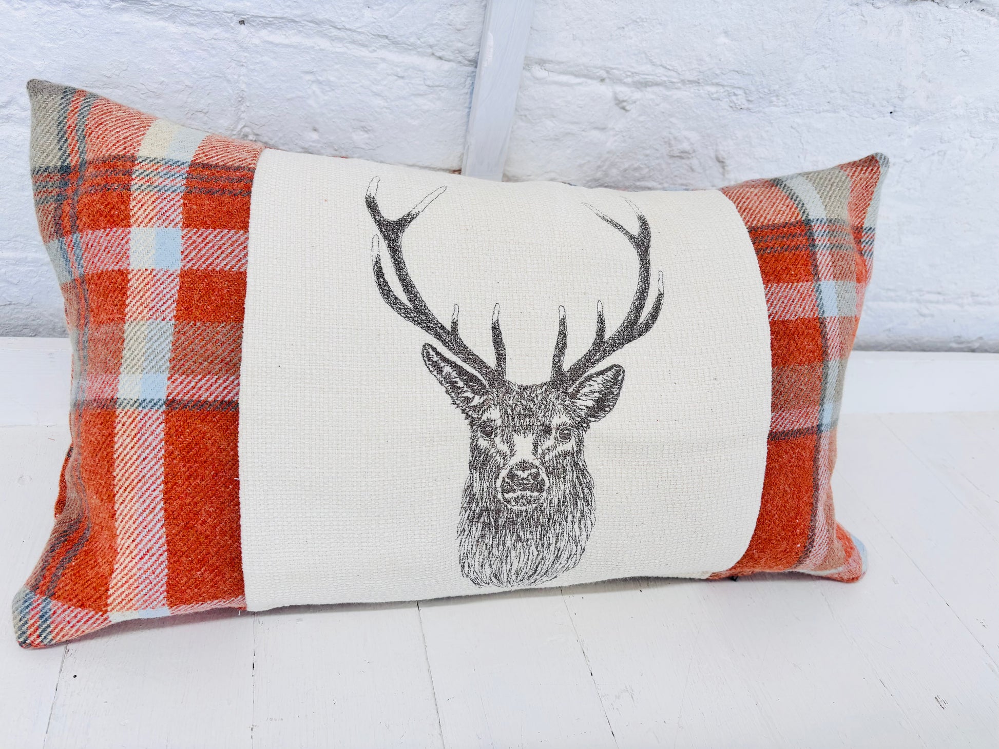 Stag Cushion- Burnt Orange Wool Long Cushion