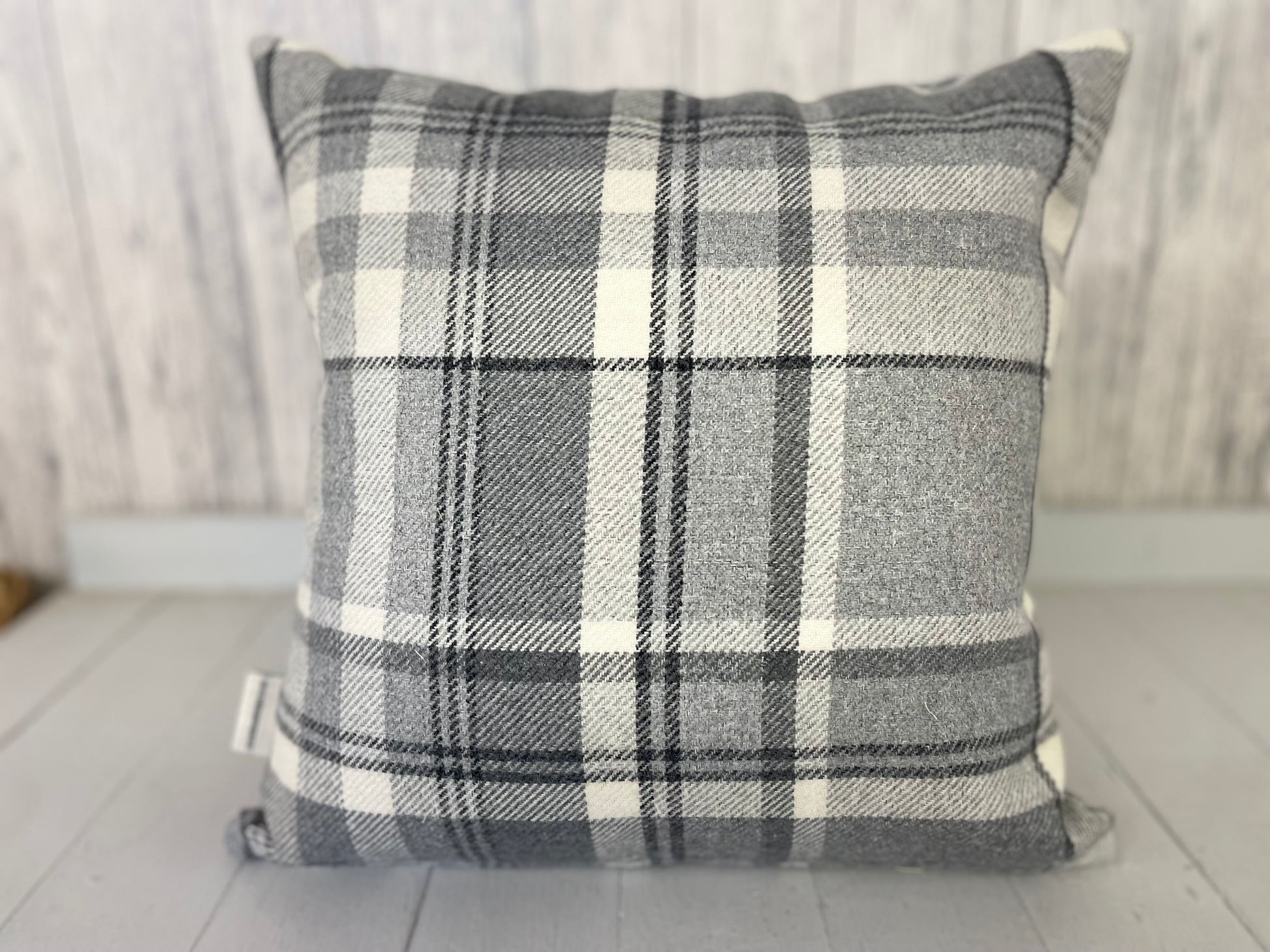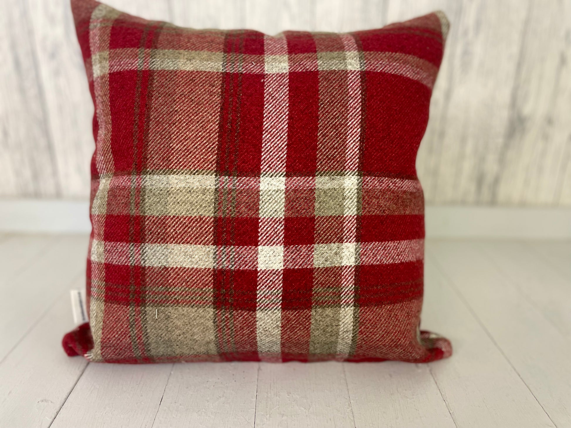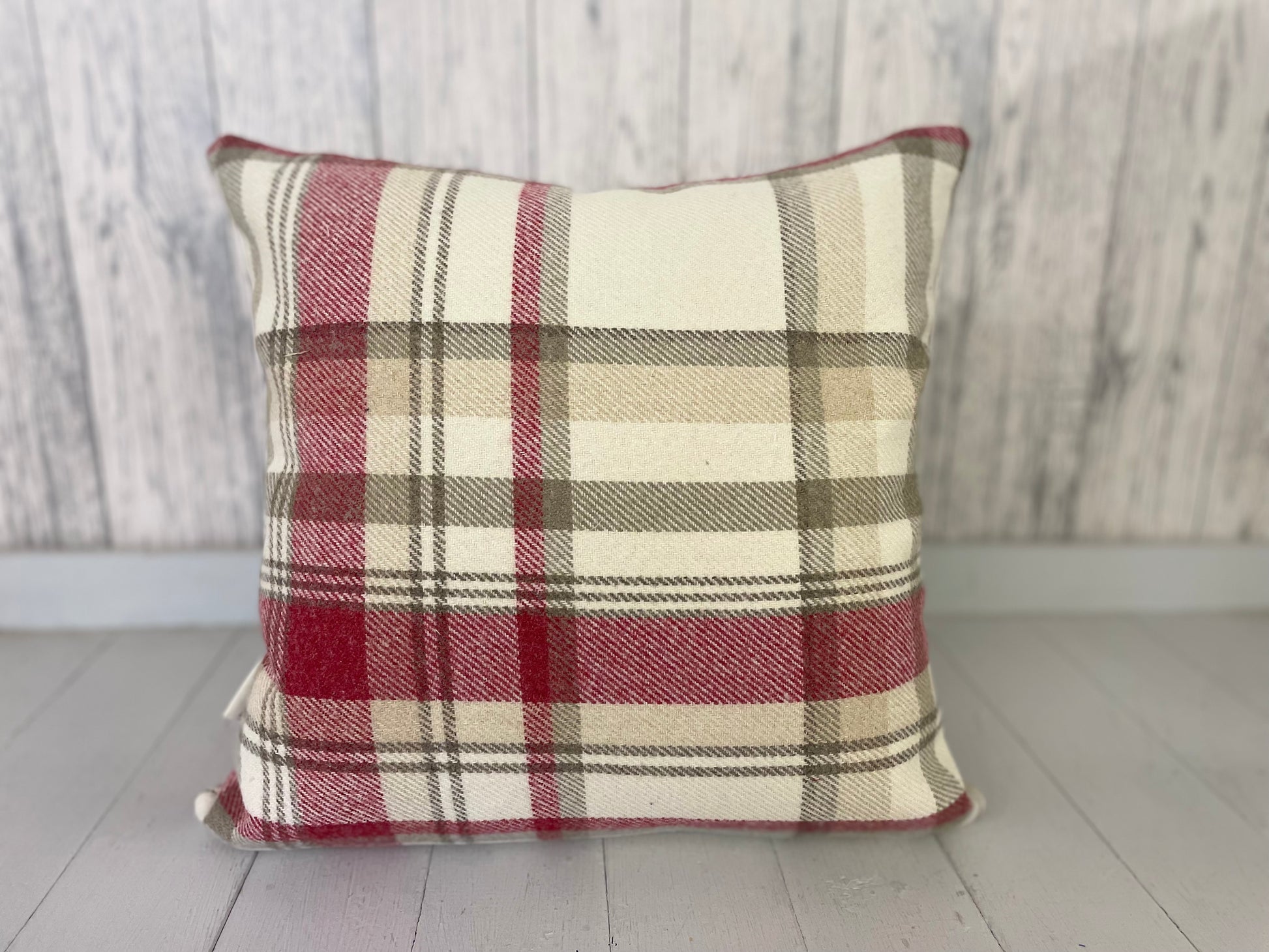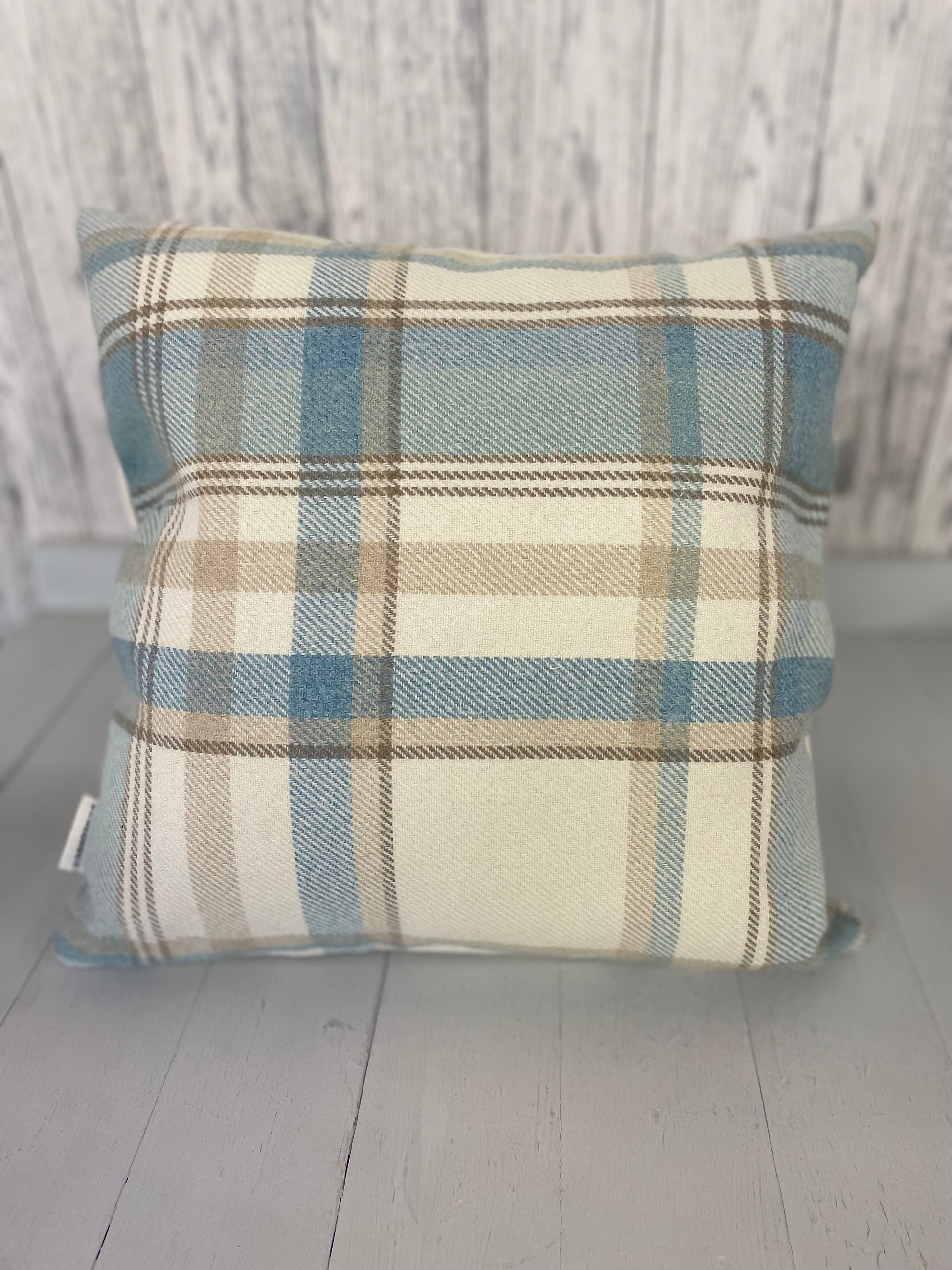 All our cushions are hand made, and are cut from fabric on the roll so please be aware that design placement can vary slightly. Our cushions have the wool fabric of your choice on the front with a plain Cream fabric on the reverse.